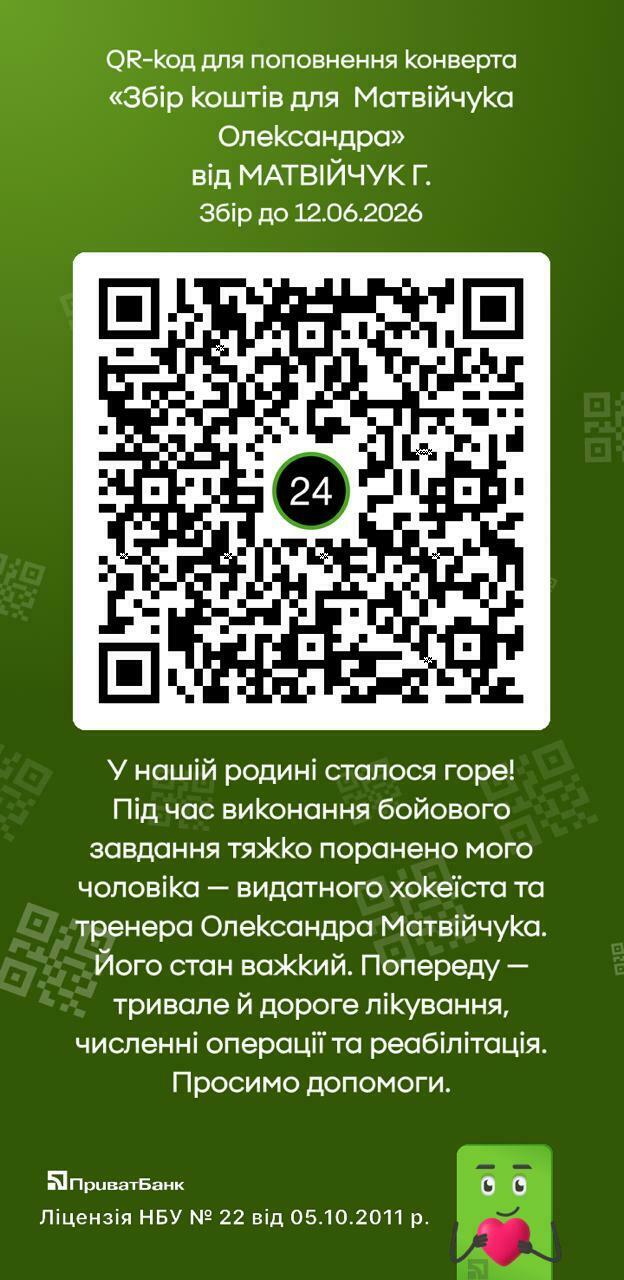 Маємо невтішні новини з фронту. 10 червня, виконуючи бойове завдання, важкого поранення зазнав колишній хокеїст «Сокола» і національної команди України, а пізніше дитячий тренер дитячих команд «Богуславських Шершнів» та київського «Сокола» Олександр Матвійчук, розвідник, старший сержант, неодноразово нагороджений ГУР МО.