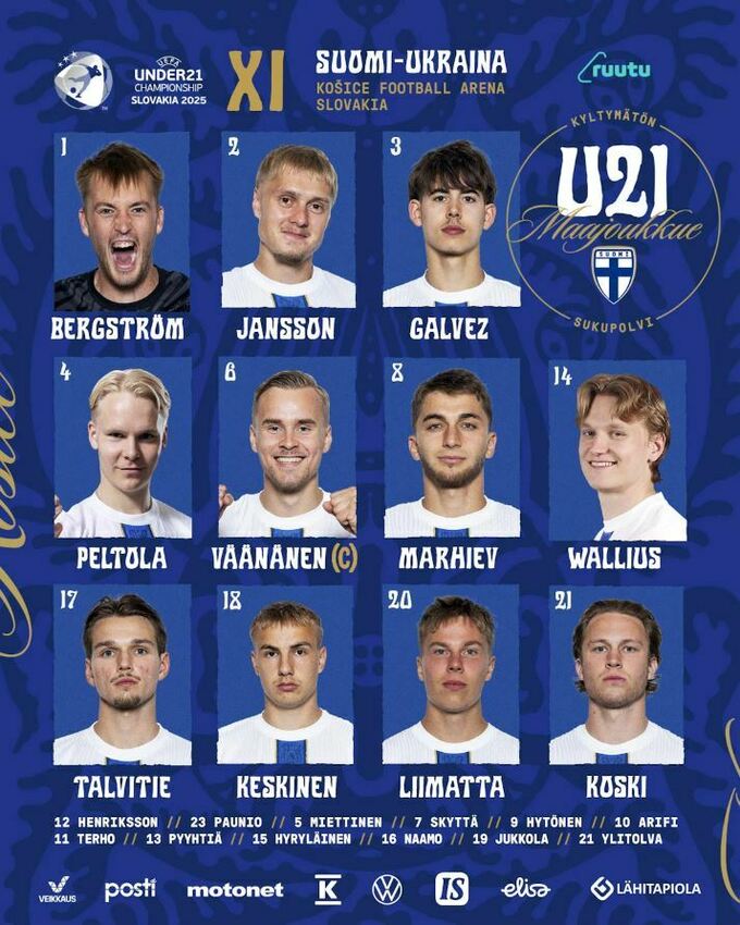 Запас: Хенрікссон, Паунио, Мієттінен, Хютенен, Аріфі, Наамо, Юккола