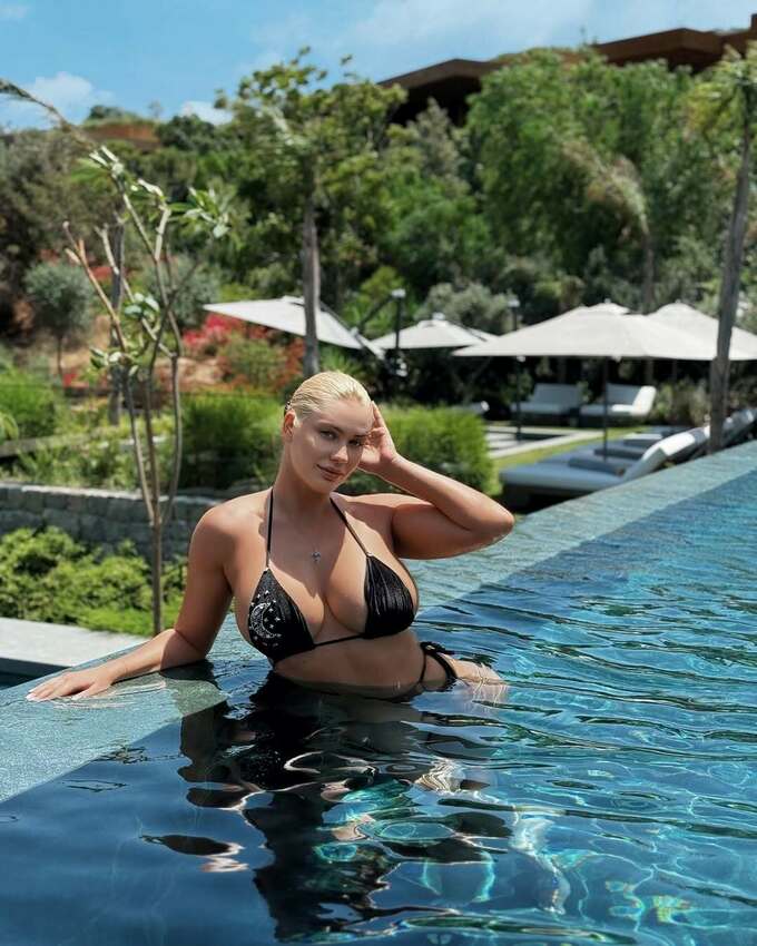 Дружина футболіста «Трабзонспора» Олександра Зубкова виклала кадри в міні-бікіні біля басейну, продемонструвавши розкішну фігуру.