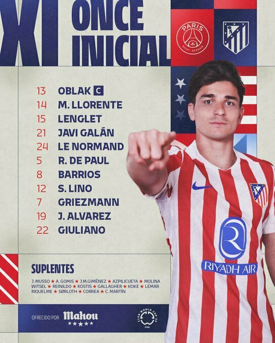 «Атлетіко»: Облак – Галан (Мандава, 62), Ленгле, Ле Норман, Льоренте – Ліно (Коке, 46), Барріос (Серлот, 70), Де Пауль (Галлагер, 62), Сімеоне (Корреа, 62) – Альварес, Грізманн.