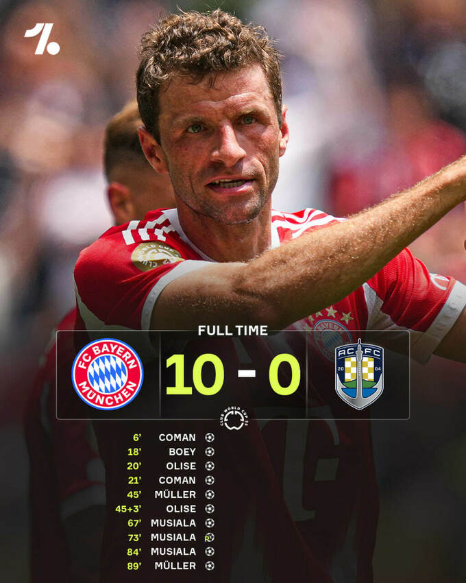 Голи: Кінгслі Коман, 6, 21, Саша Бое, 18, Майкл Олісе, 20, 45+3, Томас Мюллер, 45, 89, Майкл Олісе 45+3, Джамал Мусіала, 67, 73 (пенальті), 84