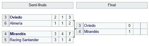 У першому матчі 15 червня «Мірандес» вдома мінімально переграв «Ов’єдо» з рахунком 1:0.