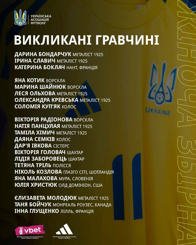 Головний тренер жіночої збірної України Володимир Пятенко оголосив імена 22 футболісток, викликаних на навчально-тренувальний збір для підготовки до матчу зі збірною Польщі.