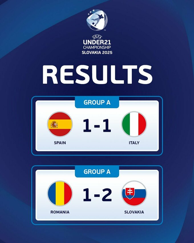 До 1/4 фіналу з групи A вийшли Іспанія та Італія (по 7 очок), турнір залишають Словаччина (3) та Румунія (0).