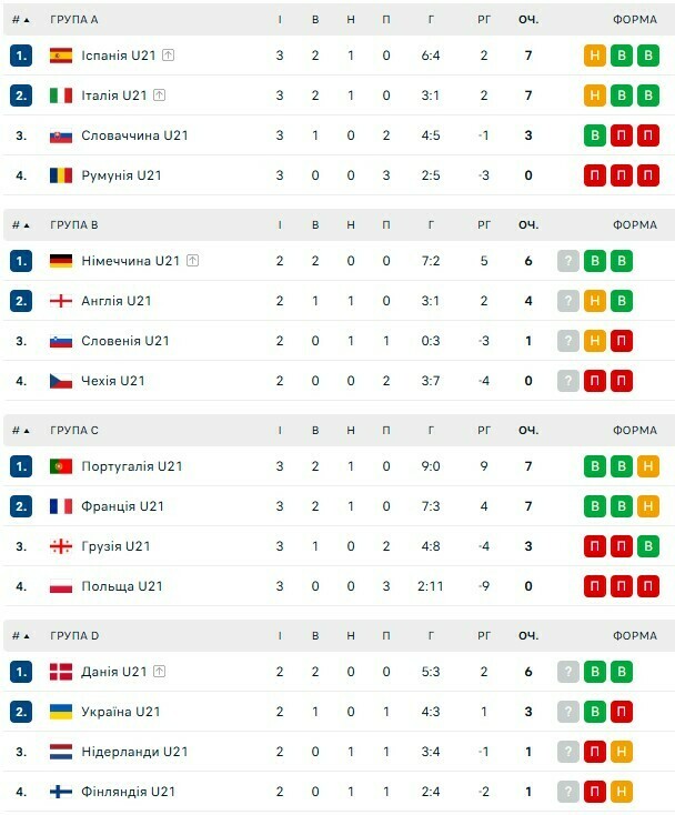 Таблиці Євро U-21. Визначено 6 чвертьфіналістів. На кого вийде Україна?