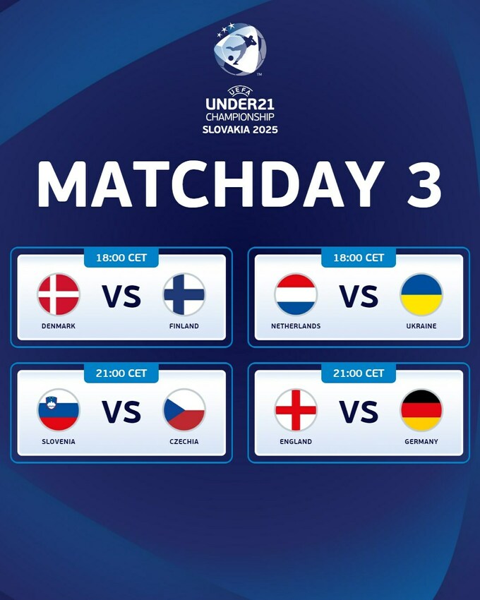 Євро-2025 U-21. Матчі 3-го туру, 18 червня. Дивитися онлайн LIVE