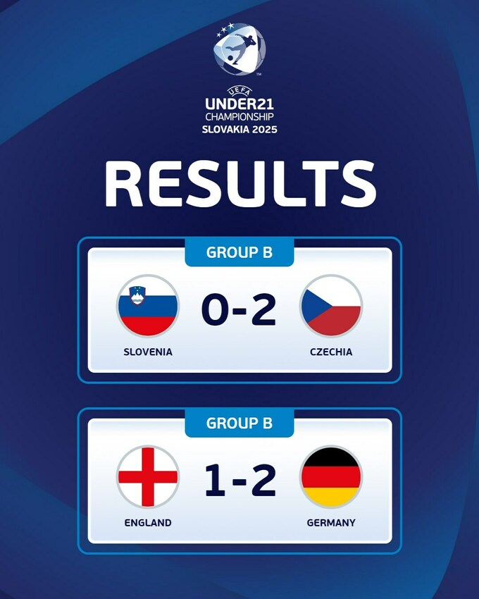 Із групи B у плей-оф вийшли Німеччина (9 очок) та Англія (4), а Чехія (3) та Словенія (1) залишають турнір.