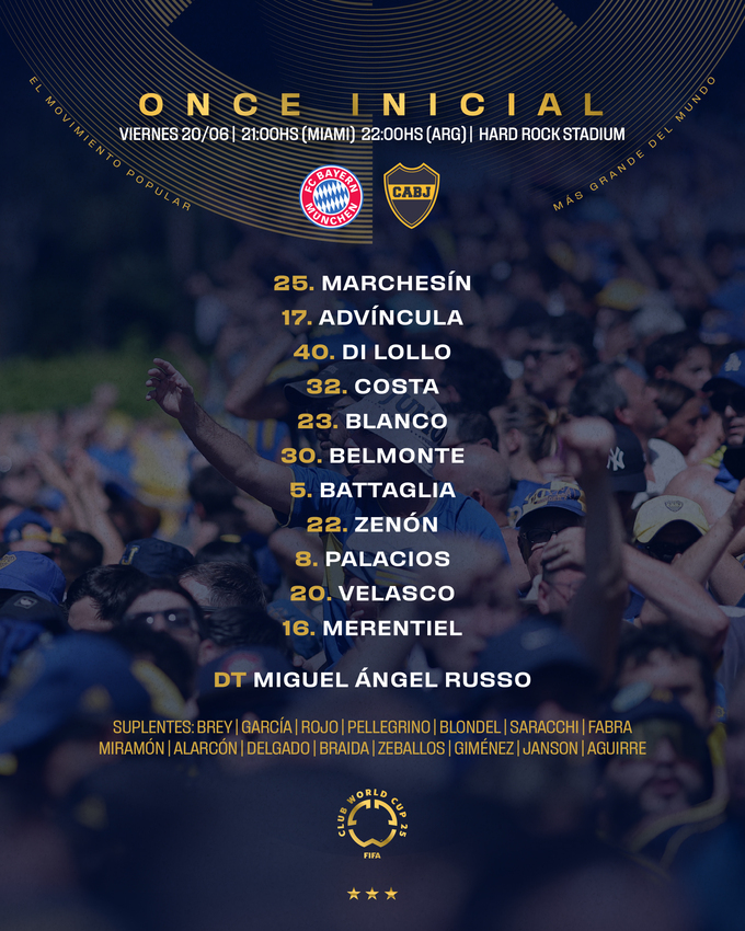 Команди Баварія (Німеччина) та Бока Хуніорс (Аргентина) зустрінуться на арені Hard Rock Stadium у Майамі-Гарденс.