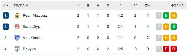 Турнірне становище: Реал (4 очки), РБ Зальцбург (4), Аль-Хіляль (2), Пачука (0). В останньому турі зіграють: РБ Зальцбург – Реал, Аль-Хіляль – Пачука.