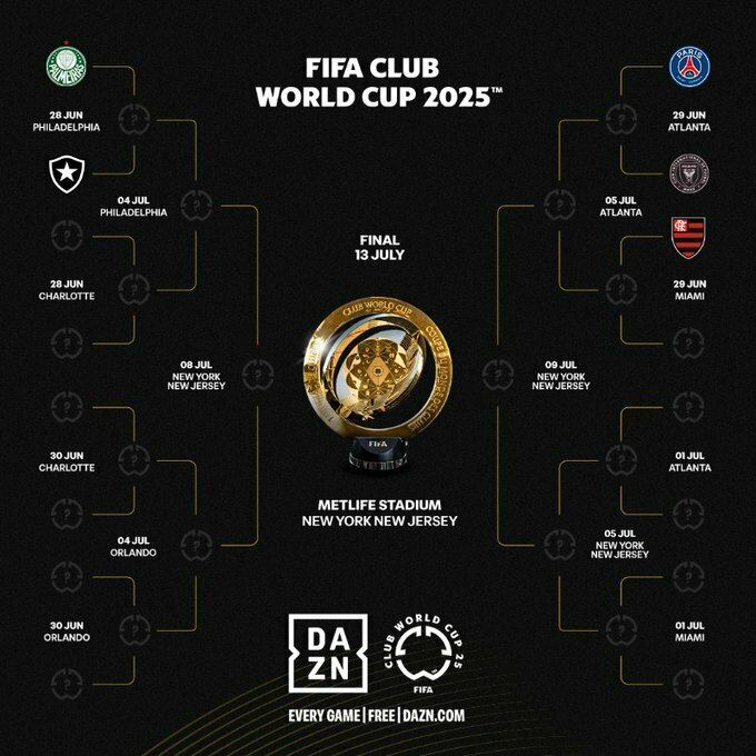 Чаплі і парижани зустрінуться між собою 29 червня в Атланті на стадіоні Мерседес-Бенц Арена, а бразильські колективи зійдуться в очному протистоянні того ж числа у Філадельфії на арені Лінкольн Файненшел Філд.