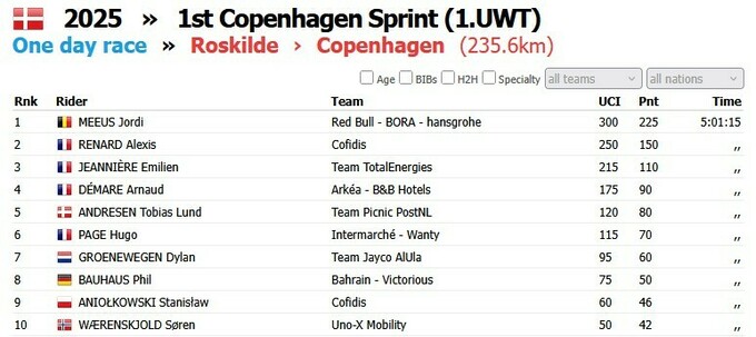 Представник команди Red Bull–Bora–Hansgrohe Йорді Меус став першим переможцем нової гонки Світового туру – Copenhagen Sprint. А за день до цього бельгієць виграв шостий етап велогонки Тур Швейцарії.