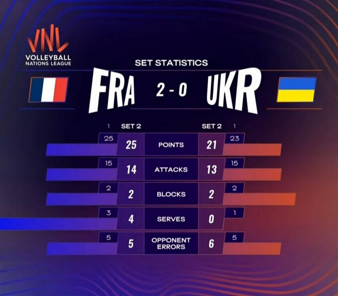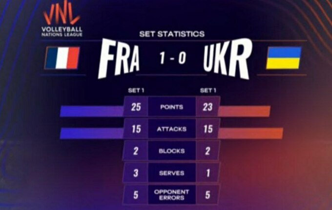 У середу, 25 червня, відбудеться матч волейбольної Ліги Націй, у якому зустрінуться національні збірні України та Франції. Матч пройде у болгарському Бургасі, гра розпочнеться о 12:30 за київським часом.