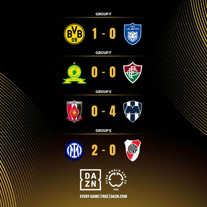 Інтер Мілан обіграв Рівер Плейт з рахунком 2:0, а Монтеррей разом з Серхіо Рамосом завдав Ураві Ред Даймондс нищівної поразки – 4:0.