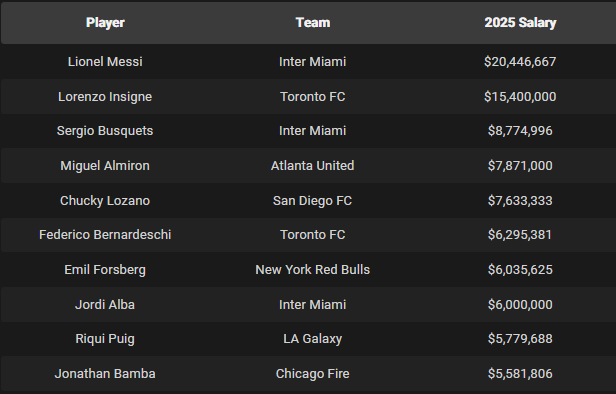 Найбільш високооплачуваним гравцем ліги, очевидно, став легендарний аргентинський нападник Інтер Маямі Ліонель Мессі. Його оклад становить 20.4 мільйонів в американській валюті.