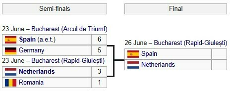 Раніше у півфіналах Іспанія виграла матч-трилер у Німеччини (6:5 д.ч.), а Нідерланди завдали поразки Румунії (3:1).