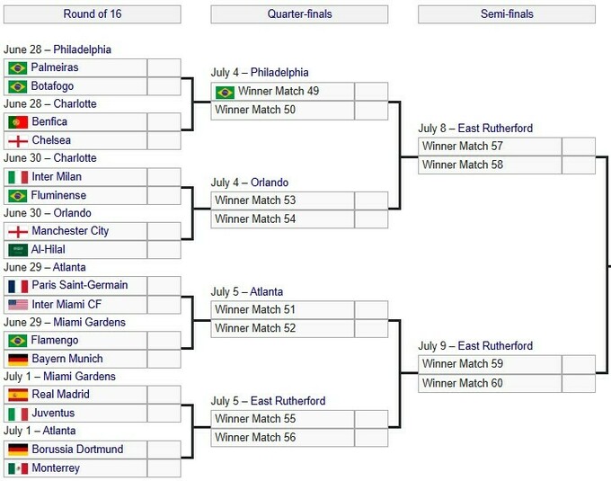 30 червня італійський Інтер зіграє з Флуміненсе з Бразилії, а англійський Манчестер Сіті поміряється силами з саудівським клубом Аль-Хіляль.