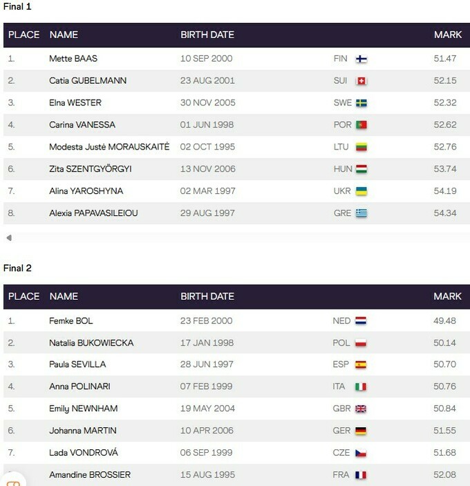 - 1. Фемке Бол (Нідерланди) – 49.48 сек (CR)