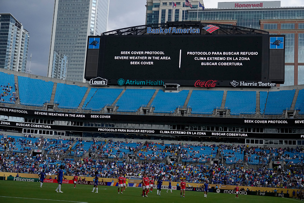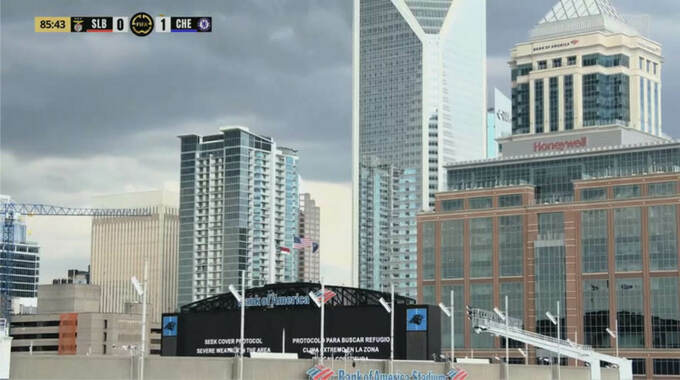 У місті Шарлотт несприятлива погода для гри, команди пішли у підтрибунне приміщення