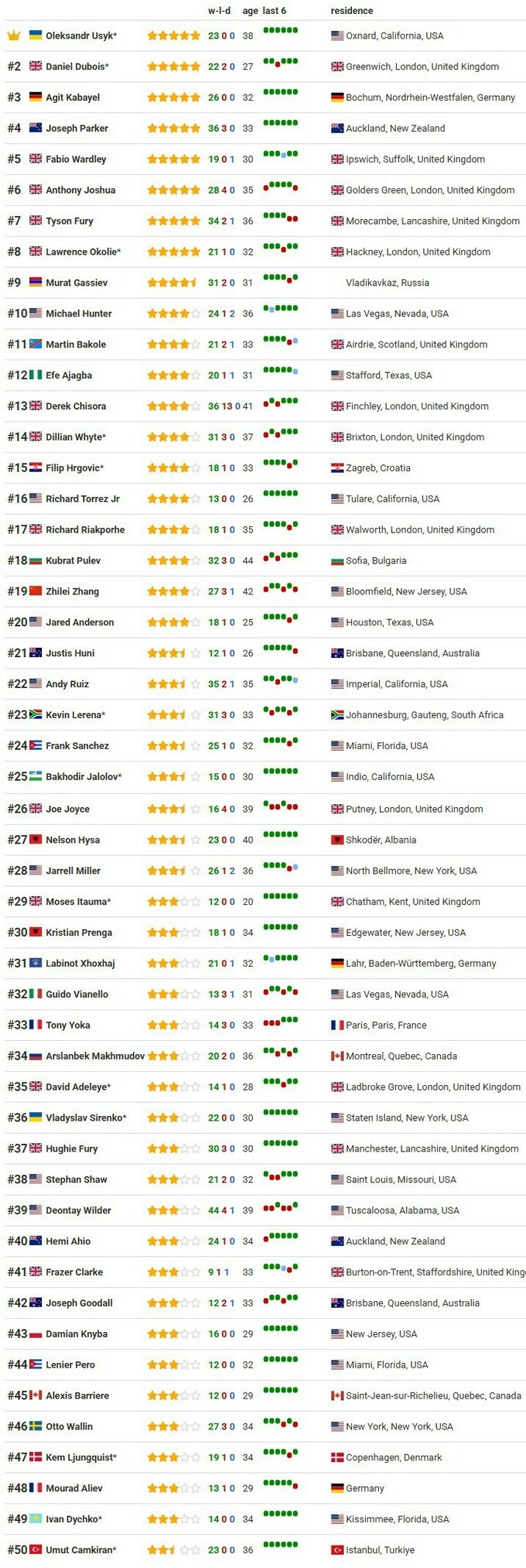 Топ-50 найкращих діючих боксерів надважкої ваги (BoxRec)