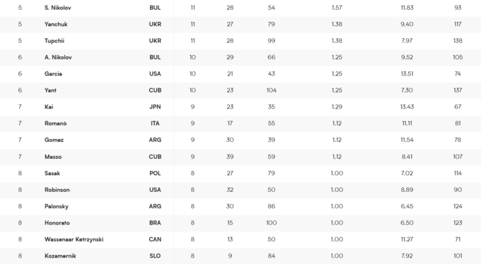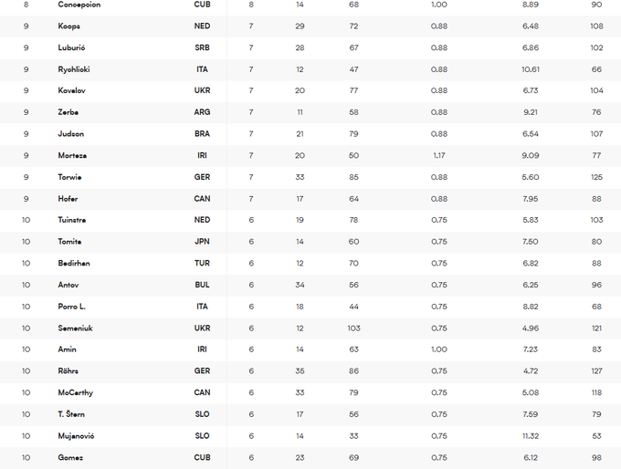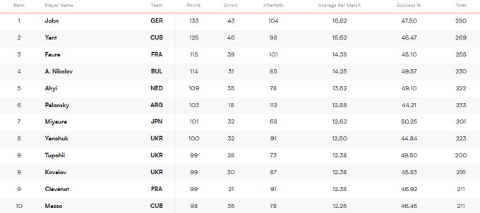 У грі на подачі українці також були серед лідерів: Тупчій і Янчук виконали по 11 ейсів, Ковальов – 7, а Семенюк додав ще 6.