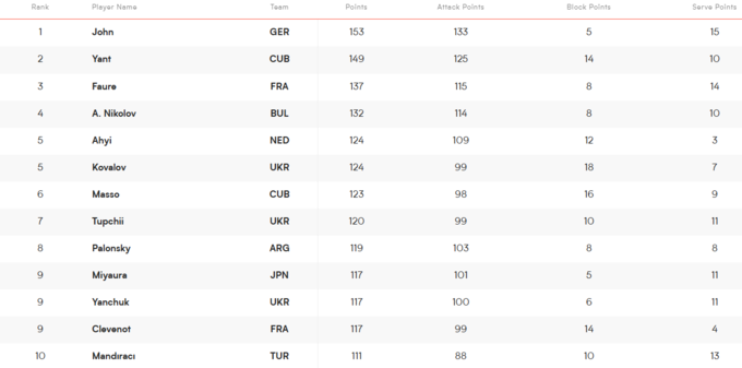 За підсумками двох тижнів одразу кілька українських волейболістів увійшли до числа найкращих за індивідуальними статистичними показниками.