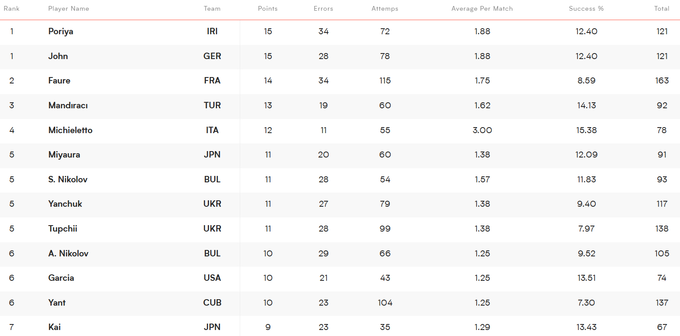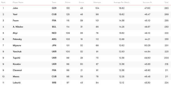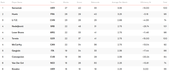 А Юрій Семенюк, до слова, очолює рейтинг блокувальників турніру. Серед лідерів наші гравці й за іншими індивідуальними показниками.