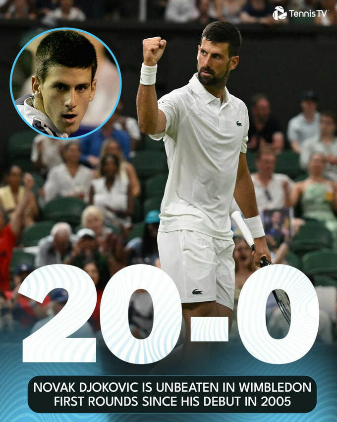 Новак 20-й раз у кар'єрі подолав перший раунд Вімблдона. Він дебютував на трав'яному мейджорі у 2005 році і відтоді жодного разу не програвав на старті.