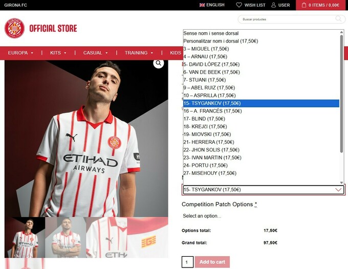 Цю зміну вже зафіксовано на офіційному сайті іспанського клубу: саме 15-й можна обрати при купівлі футболки з ім’ям українця.