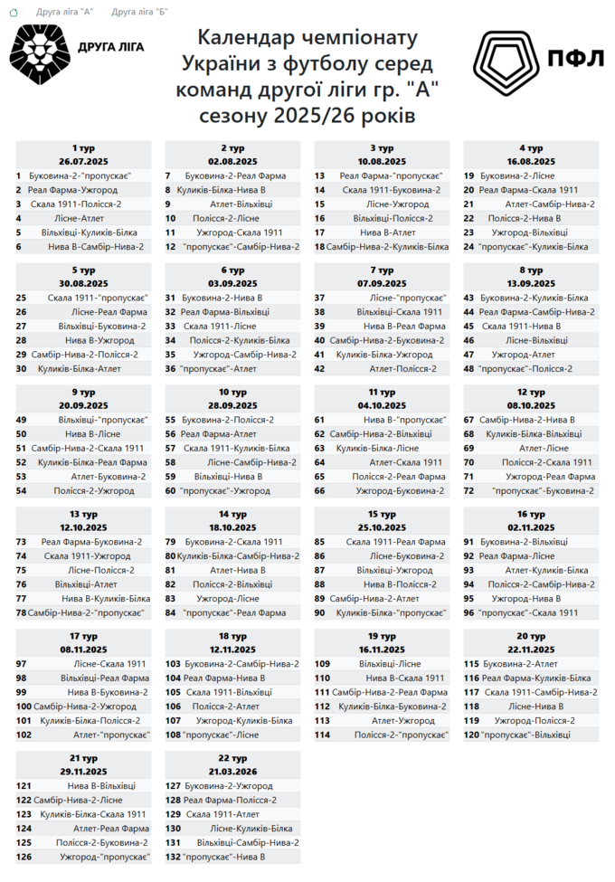 Вдень 3 липня жеребкуванням було визначено календар змагань у групах А та Б Другої ліги.