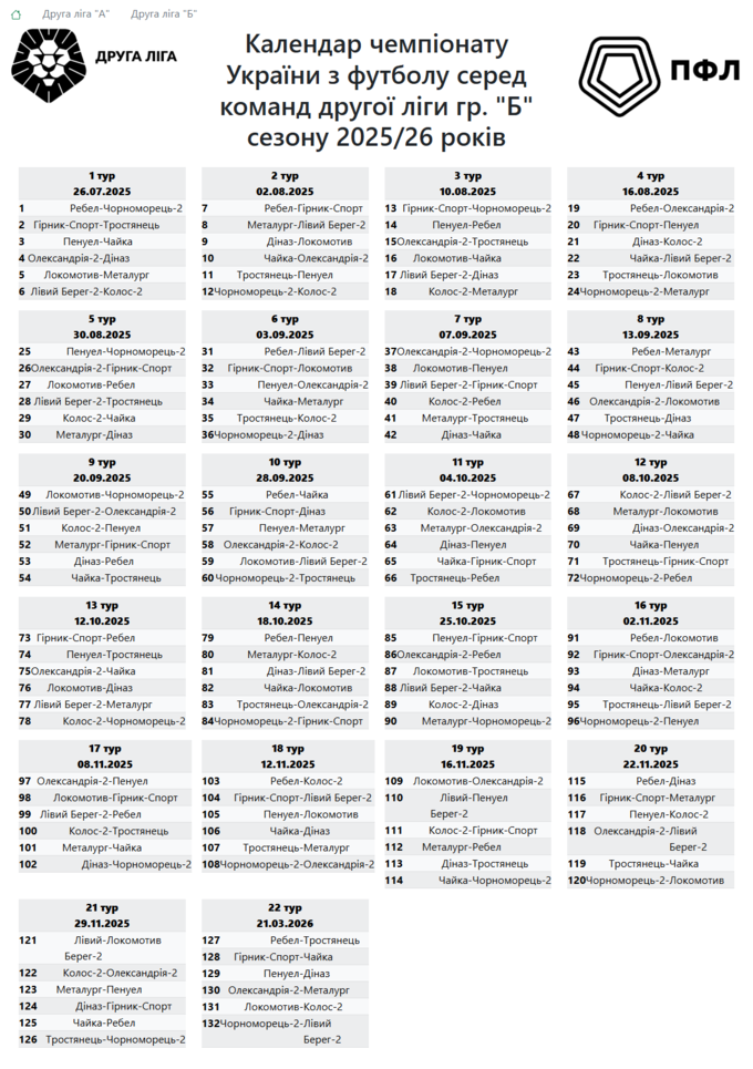 Чемпіонат України серед команд клубів Другої ліги сезону 2025/26 проводиться в три кола – осінь-весна за круговою системою.