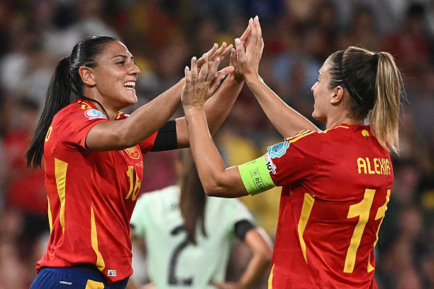 Уже до перерви Іспанія забила чотири м’ячі. Двічі відзначилася Естер, також забили Вікторія Лопес та Алексія Путельяс.