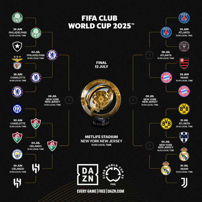 Клубний чемпіонат світу 2025 проходить у США, у ньому беруть участь 32 команди з 6 континентальних конфедерацій. Фінал турніру відбудеться в ніч з 13 на 14 липня на Метлайф Стедіум в Іст-Резерфорді.