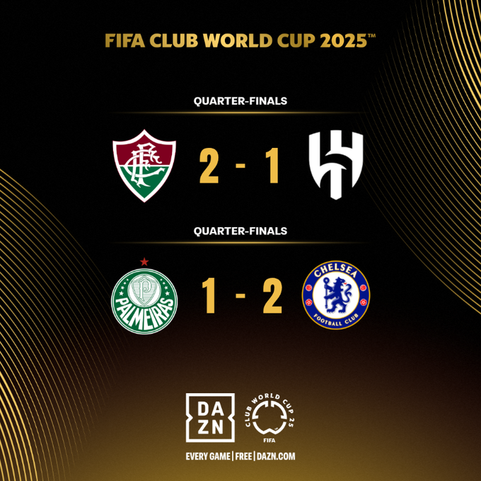 Челсі переміг Палмейрас (2:1), і в півфіналі сіні зіграють проти триколірних – бразильського клубу Флуміненсе, який кількома годинами раніше виявився сильнішим за саудівський клуб Аль-Хіляль (2:1).