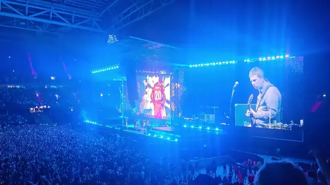 Під час виконання хіта «Live Forever» на великому екрані з’явилося фото загиблого в ДТП футболіста «Ліверпуля».
