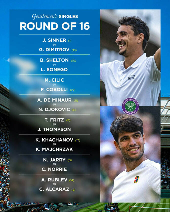 Стали відомі всі пари 1/8 фіналу Вімблдона-2025 у чоловіків
