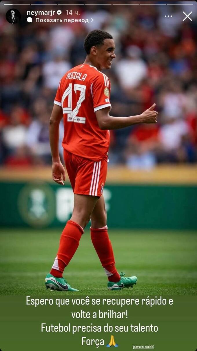 «Сподіваюся, ти швидко одужаєш і знову засяєш! Футболу потрібен твій талант. Сил🙏», – написав Неймар на своїй сторінці в Instagram.