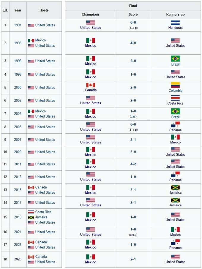 Історична таблиця. Всі фінали Золотого кубка КОНКАКАФ