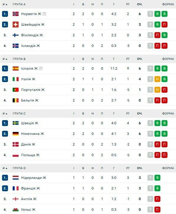 Раніше до 1/4 вийшли лідери інших груп Норвегія та Іспанія.