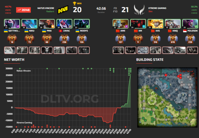 NAVI в першій карті показали першу заготовку і стратегію з Undying в мід для Niku і Disraptor на четвірку для Zayac. Шансів для Xtreme там не було і досить легка гра для українців.