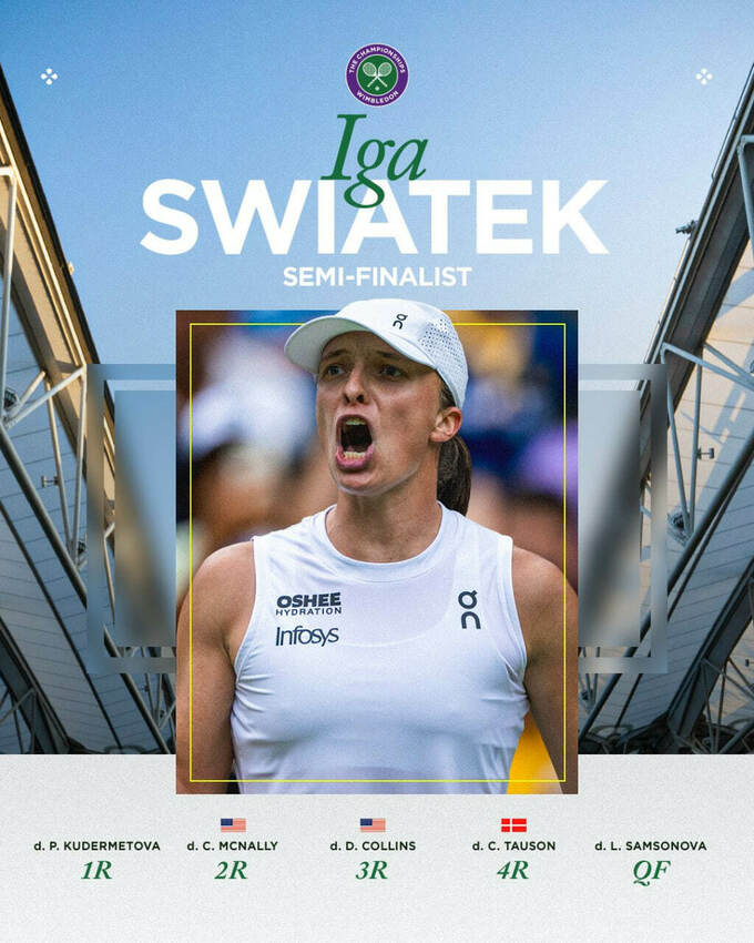 Іга вперше в своїй кар'єрі пробилася до півфіналу Вімблдона-2025 і вдев'яте на Grand Slam. Свьонтек побореться за шостий вирішальний поєдинок на слемах.