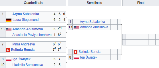 9 липня Іга Свьонтек вибила Людмилу Самсонову, а Белінда Бенчич здолала Мірру Андрєєву