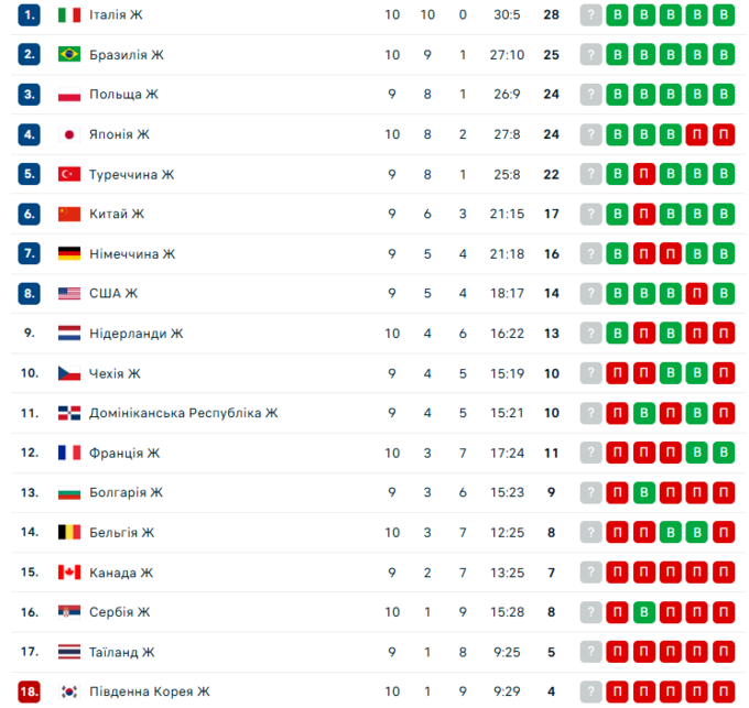 Завдяки трьом очкам, здобутим у цьому поєдинку, нідерландки піднялися одразу на три позиції у турнірній таблиці – з 12-го на 9-е місце. Тепер у їхньому активі п’ять перемог і 13 очок. Вони наблизилися до зони плей-оф, де наразі перебувають збірні Німеччини (5 перемог, 16 очок) та США (5 перемог, 14 очок), які ще зіграють свої матчі у 10-му турі змагань. Бельгійки, своєю чергою, опустилися на 14-те місце (3 перемоги, 8 очок).