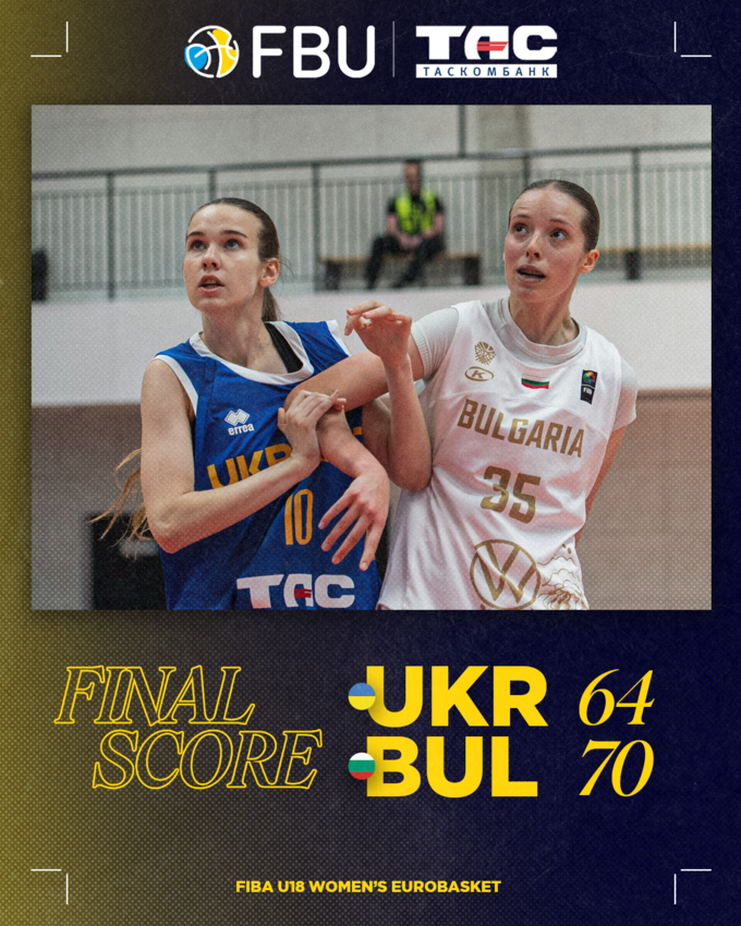 Жіноча збірна України зазнала поразки в матчі раунду за 9–16 місця на чемпіонаті Європи U-18 з баскетболу в Дивізіоні В. Українська команда поступилась Болгарії з рахунком 64:70.