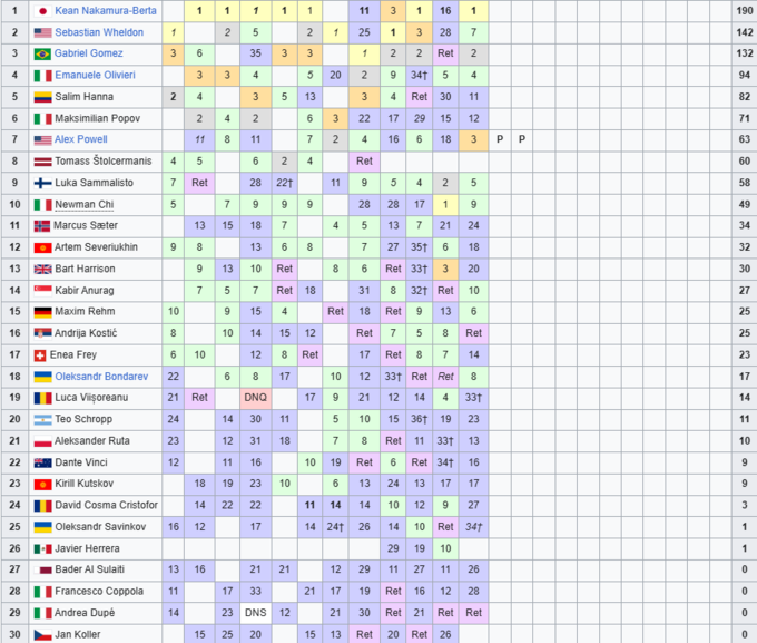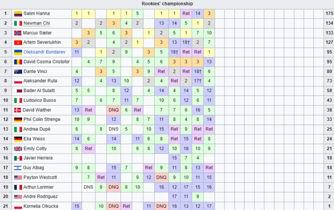 Після двох заїздів Олександр Бондарев посідає п’яте місце в кубку новачків та 18-те – у загальному заліку.