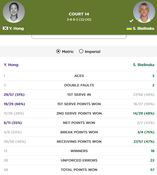 Статистика матчу Єрі Хонг – Софія Белінська