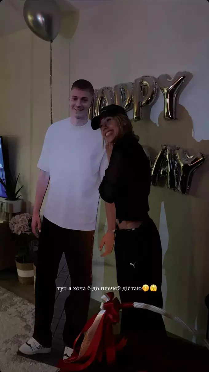 Подруги подарували їй картонну фігуру коханого — півзахисника «Динамо» Володимира Бражка.