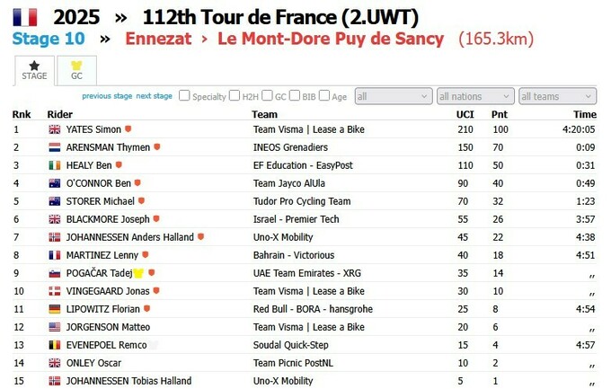 Tour de France 2025, Франція, 14 липня. Десятий етап, Еннза – Пюї-де-Сансі (165,3 кілометра)