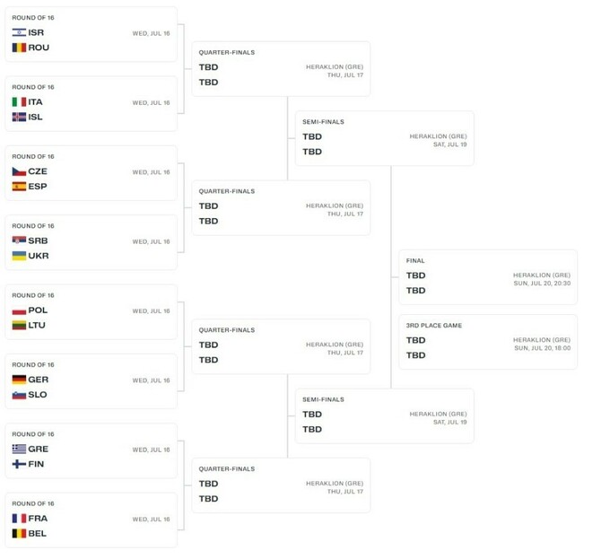 Першим суперником України у плей-оф буде збірна Сербії, яка виграла групу D. Гра відбудеться 16 липня. У разі перемоги Україна вийде до чвертьфіналу, а у разі поразки розпочне боротьбу за виживання.