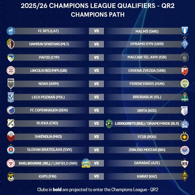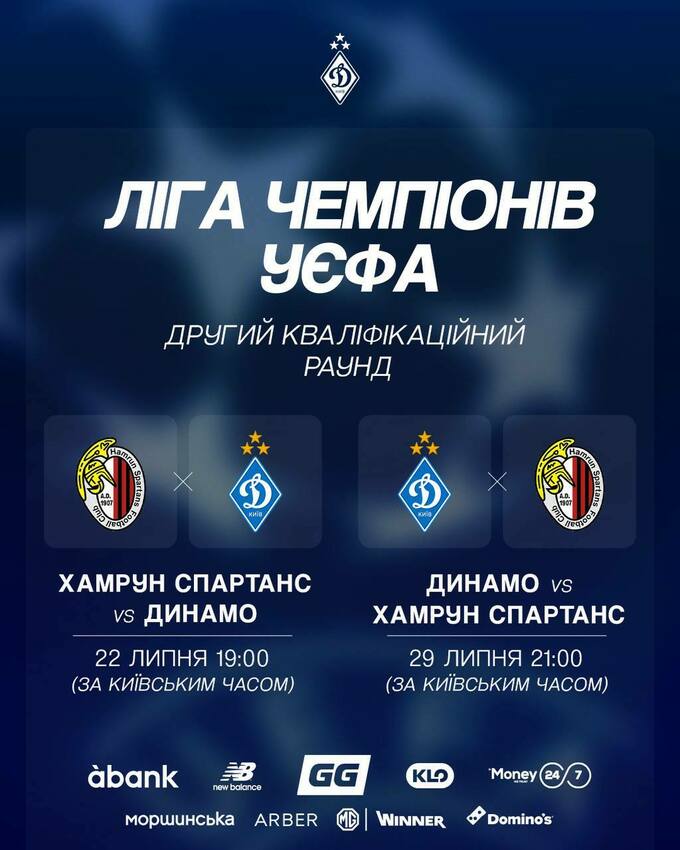 Матчі Q2 Ліги чемпіонів між Динамо та Хамрун Спартанс відбудуться 22 та 29 липня, перший поєдинок київська команда проведе на виїзді.