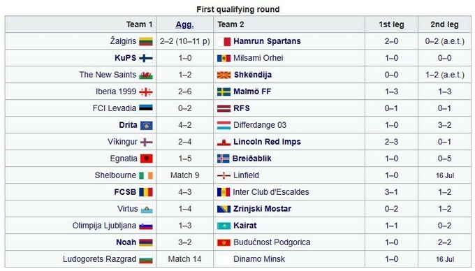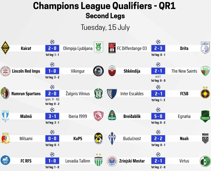 Ввечері 15 липня відбулися матчі-відповіді першого кваліфікаційного раунду Ліги чемпіонів та визначено пари Q2.